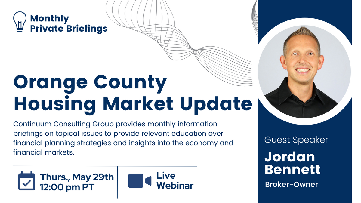 Join us on May 29th at 12:00 pm PT to hear Jordan Bennett, broker-owner at Regency Real Estate Brokers Inc., provide the latest updates on the Orange County housing market.